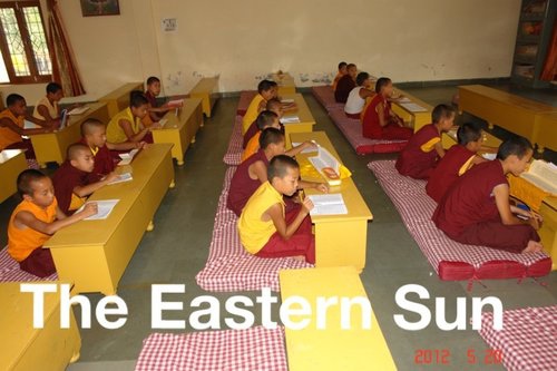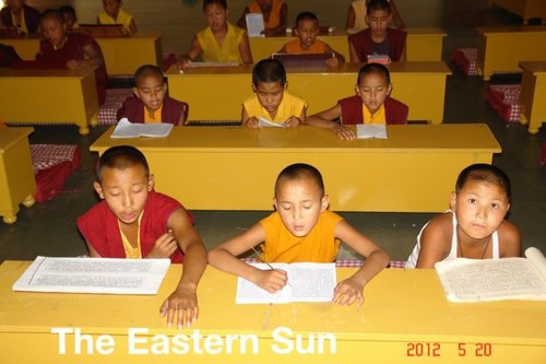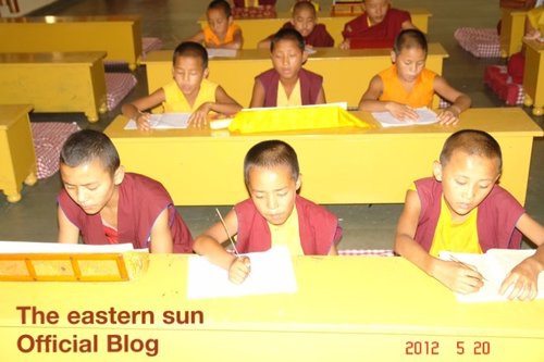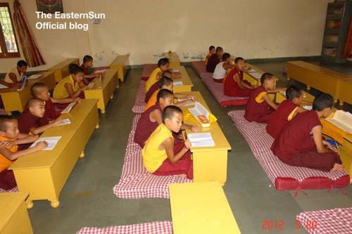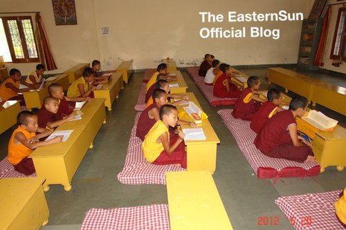 白熱熱的天 ~印度敏卓林的小沙彌們正在用功呵 !