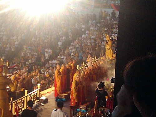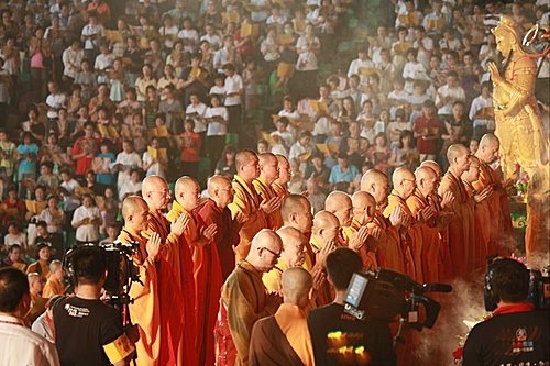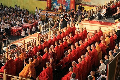 尊貴的 敏卓林堪千仁波切受邀參與國際齋僧大法會,擔任印度代表主法上師,與諸山長老們共同為臺灣祈福 (在海濤法師身後即是敏林堪千仁波切 )