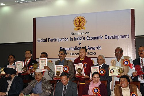 (註) :「印度國際友好協會」 是印度最大的志工團體,主張促進經濟成長和民族的融合。這個組織無論在建立個人友誼方面,或是團體、區域、宗教和國家和平上,亦或是全球社會的進步和繁榮,都引領著主導的地位。「印度國際友好協會」曾頒發過「巴拉特喬蒂獎」(Bharat Jyoti Award)給社會各階層的人士,其中也涵括泰瑞莎修女。這個獎項,最主要是頒發給對於印度的社會有重大貢獻,或是為社會帶來重大改革的人士。今年(2010年12月4日),於印度新德里,也把這份榮譽頒予尊貴的 敏林堪千仁波切