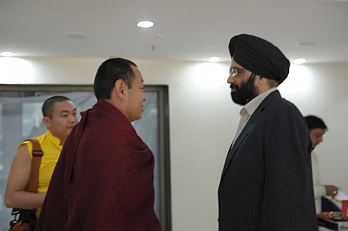頒獎典禮前,敏林堪千仁波切與頒獎之印度官方代表首次會晤