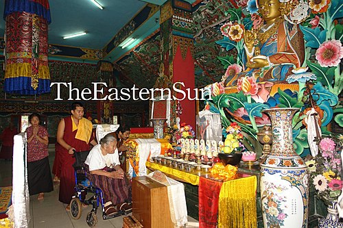 傑尊 德千拉姆 ( 敏林堪千仁波切的母親) 亦至結夏安居修法之蓮師殿致敬