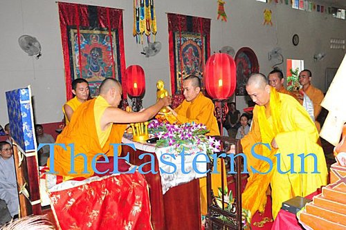 在授予大悲善逝紅觀音灌頂之前,寺院依由經典所述,執持一如佛陀住世時之相同傳統,由寺院三位最高階的比丘,先行至仁波切面前獻供、同時請求傳法灌頂與訴說祈願。敏林堪千仁波切對於他們於請法時之姿勢、舉動完全符合經典所述之正確與完美而深深感動!