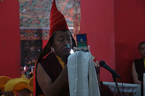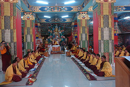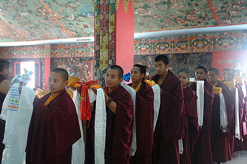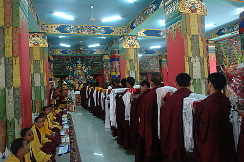 The ceremony was held in the shrine hall of Guru Padmasambhava in the Stupa and was attendent by H.E. Minling Khenchen Rinpoche(Dorje Lopon), H.E.Penam Rinpoche, Ven. Shabdrung Lhundrup Tengay, Ogyen Tobgyal Rinpoche, Ringu Tulku Rinpoche, Lodro Gyari Rinpoche, Bhutuk Gyari and Sonam Tenphel-representatives of Nyingma School in Tibetan Parliament in- exile, Dolma Gyari- Deputy Speaker of the Tibetan Parliament in-exile and representatives from different monasteries. All monks, nuns and lay community attended to pay their respect to Rinpoche.