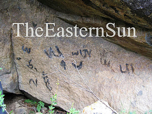 第八世敏林堪千仁波切和敏林炯仁波切幼年時在寺院之後山大石上留下用手指在石上所寫的字母
