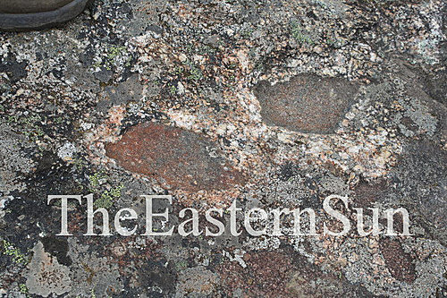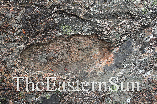 敏林堪千和曲钦(炯仁波切)幼年玩耍時以小手寫字所留下足印的大石
