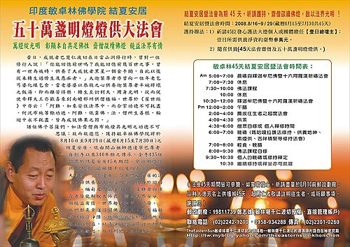 The Rainy Retreat cum Lamps Lighting Ceremony last for 45 days. Herewith may I appeal for your benevolent support and may you bring brightness to the Dharma realm.