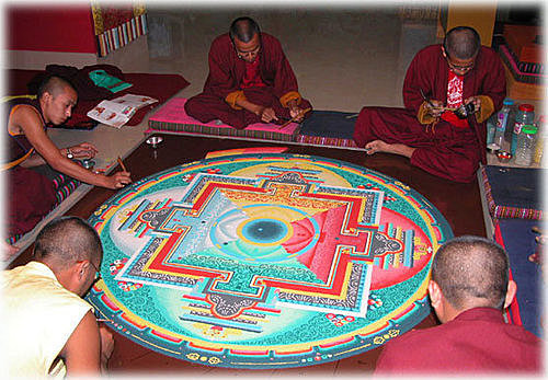 All the Sangha's will carry the Eight Lucky signs and offering objects and circumambulate the monastery. Later Rinpoche and some monks will go and pour the Mandala sand into the river.