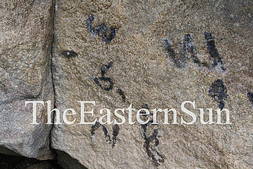 敏林堪千和曲钦(炯仁波切)幼年玩耍時以小手寫字所留下足印的大石